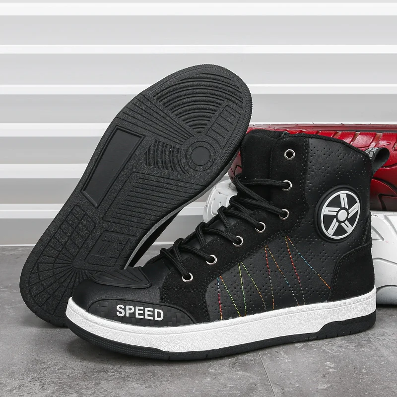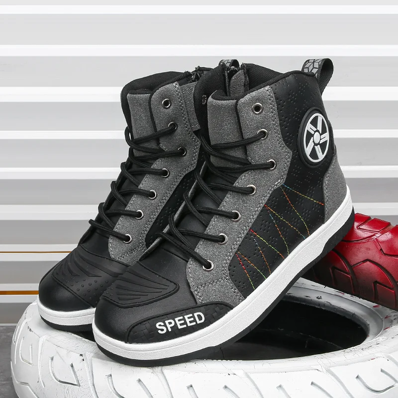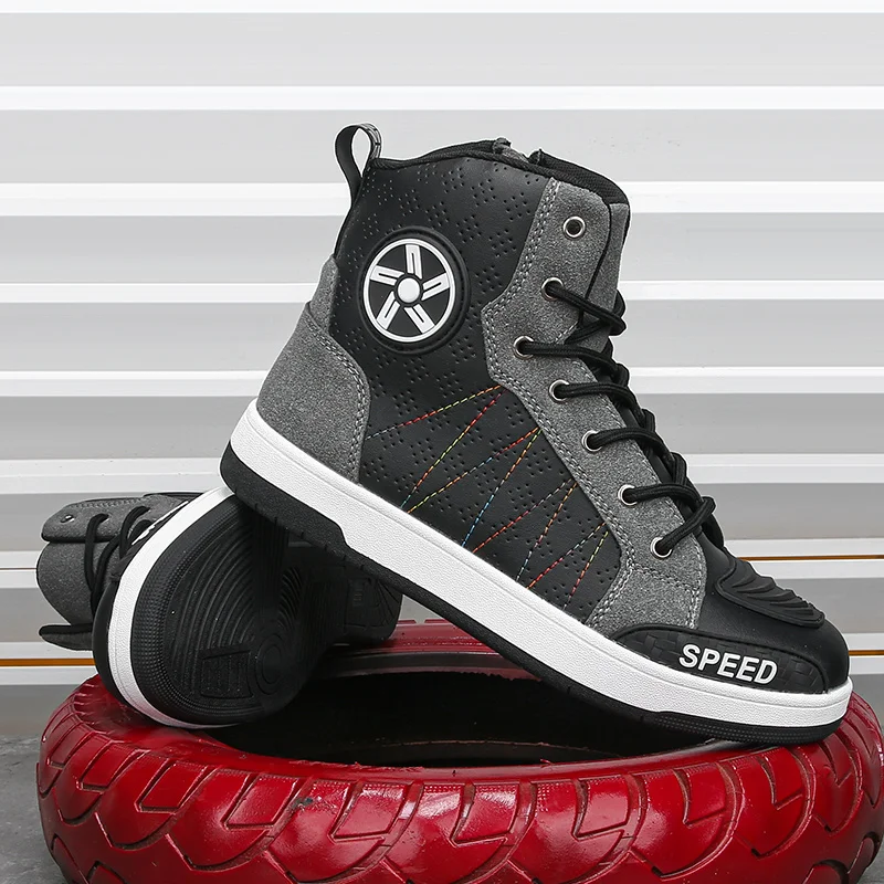 Men'S Leather Motorcycle Shoes Breathability anti Slip Wear-Resistant Motos Protective Boots Motocross Racing Riding Shoes