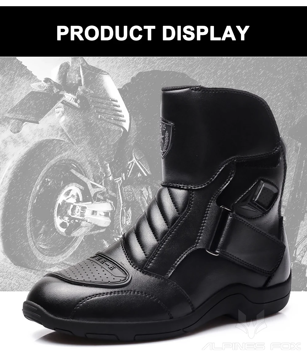 Motorcycle Leather Shoes Moto Boots Racing Bottes Motocross Boots PU Fabric Rubber Sole Wear-Resistant Anti-Collision Easy Wear