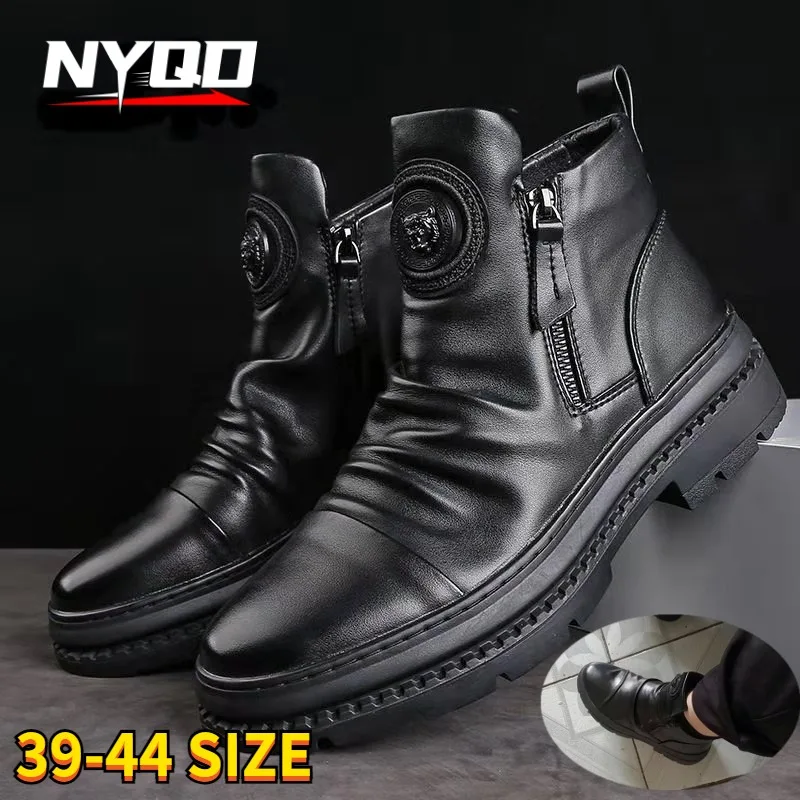 New Men Ankle Boots British Style High Top Men Shoes Motorcycle Leather Boots Zipper Retro Men'S Boots Zapatillas Hombre